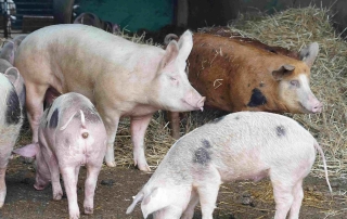 Fleischbetonte Milchrinder werden hier gezüchtet und auch geschlachtet und direktvermarktet. Ebenso auch jährlich 15-20 Bunte Bentheimer Schweine. Wurst und Räucherwaren werden übrigens vom eigens angestellten Metzger hergestellt, der hier auf dem Hof genauso gut Wurst produzieren, wie auch hin und wieder Traktor fahren kann. Der Birkenhof ist eben breit aufgestellt!